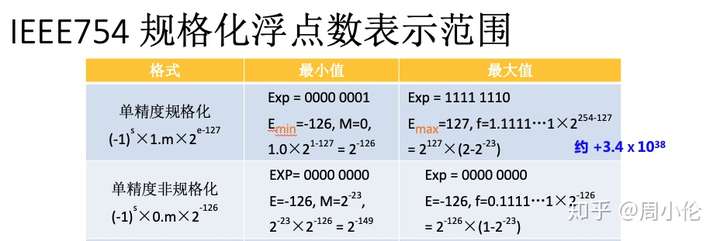 首先浮点数的范围是2−149 到 2127,其中上界是由exp的最大值决定的,下界是由非规格数的最小值决定的。